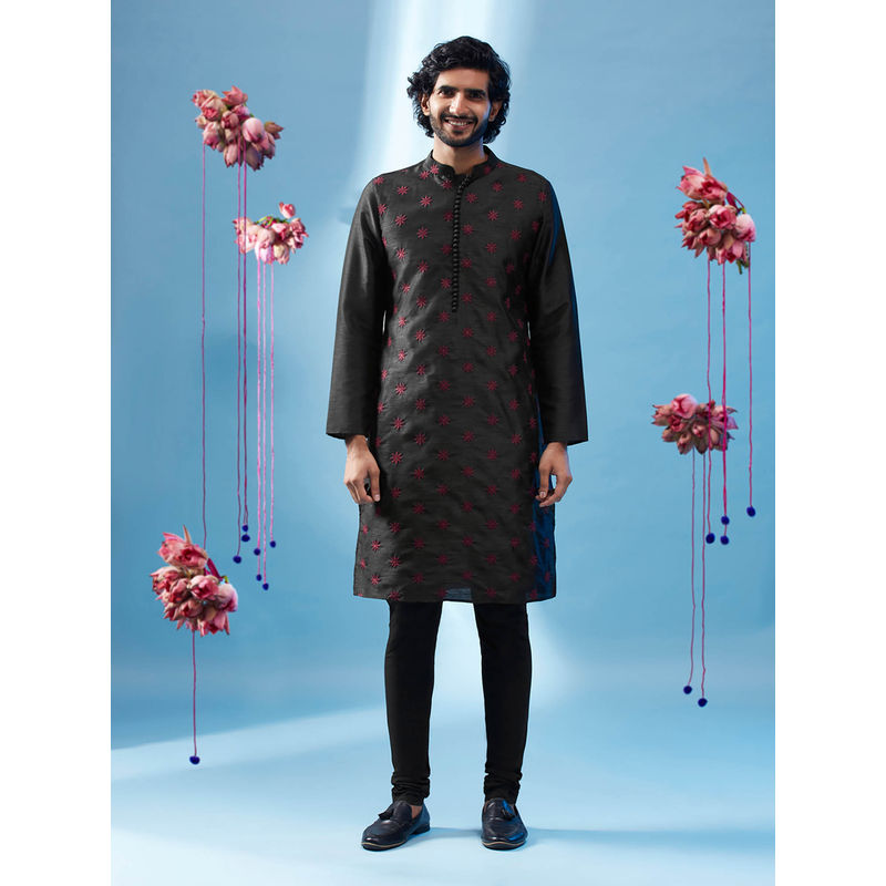 KISAH Men Black Kurta Churidar (Set of 2) (38)(38)