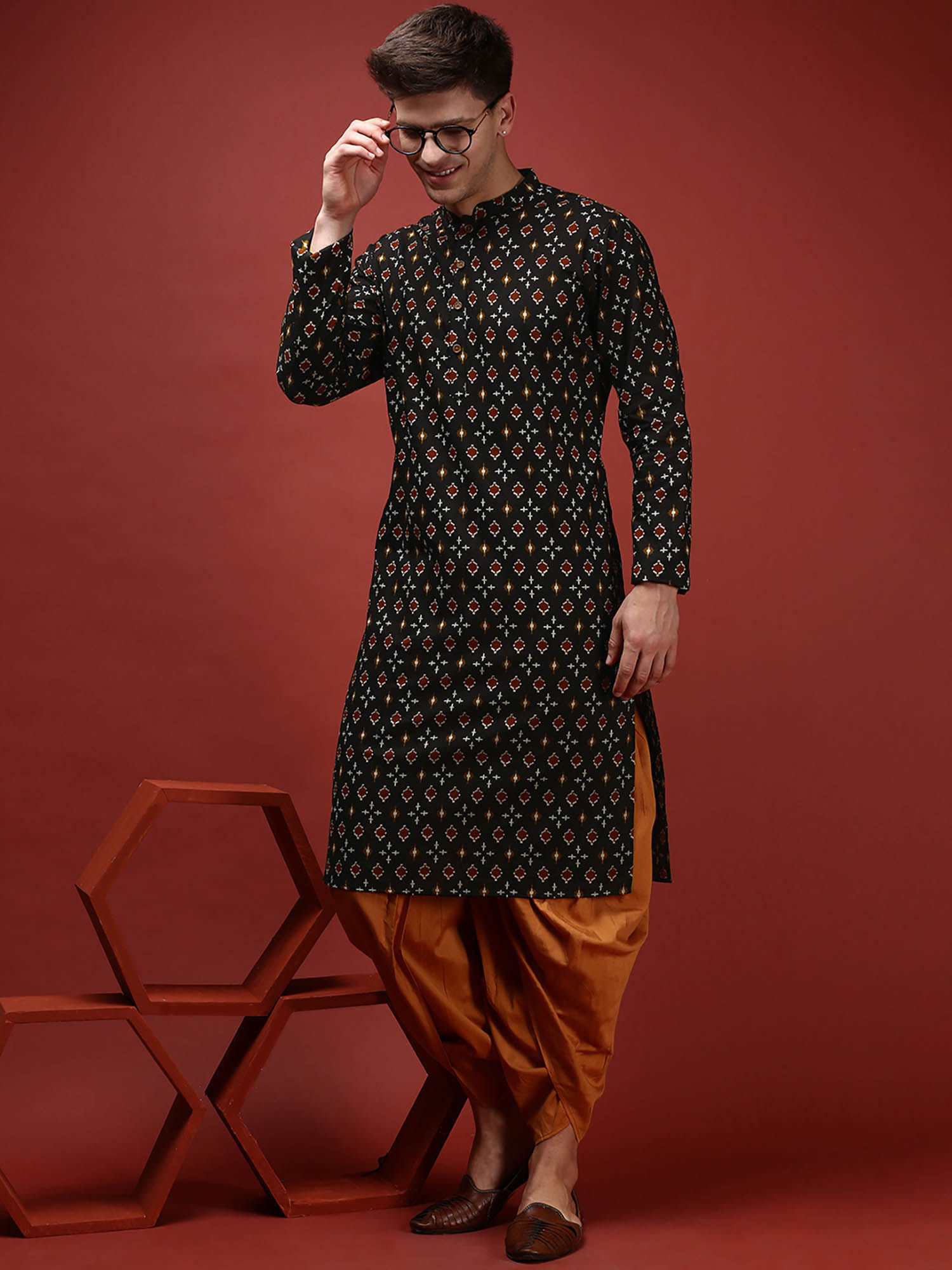 KISAH Men Black Kurta Dhoti (Set of 2) (38)
