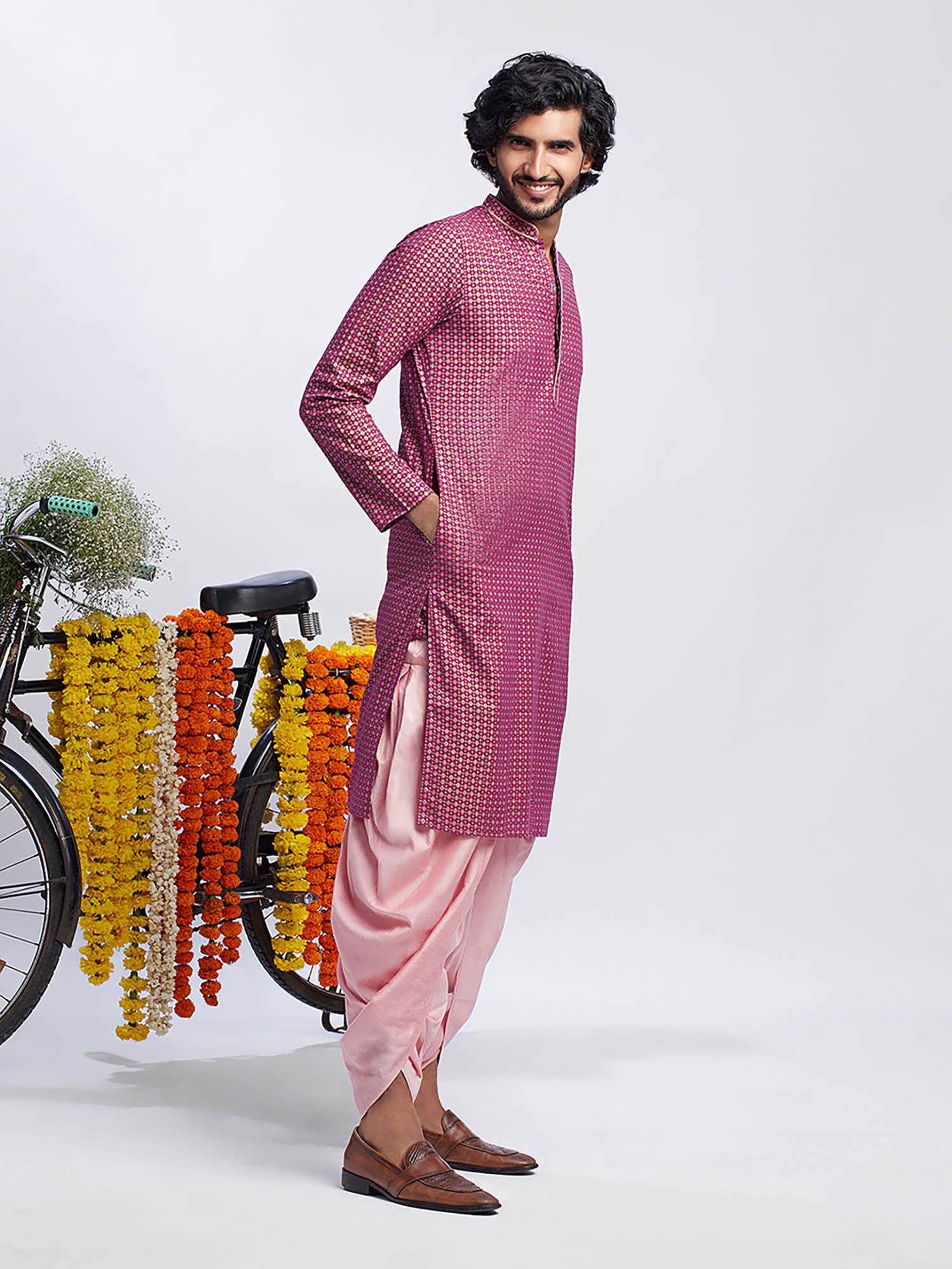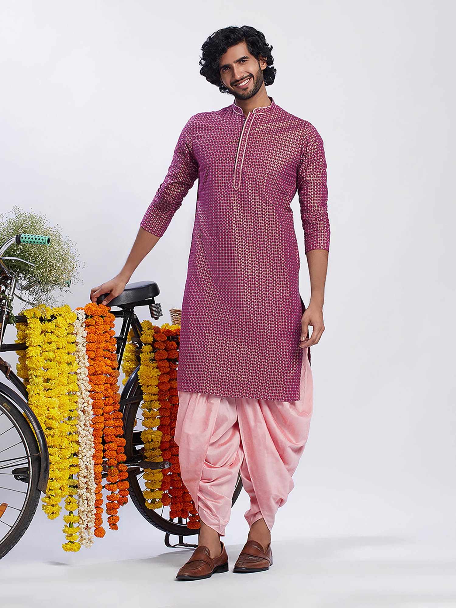 KISAH Men Pink Kurta Dhoti (Set of 2) (42)