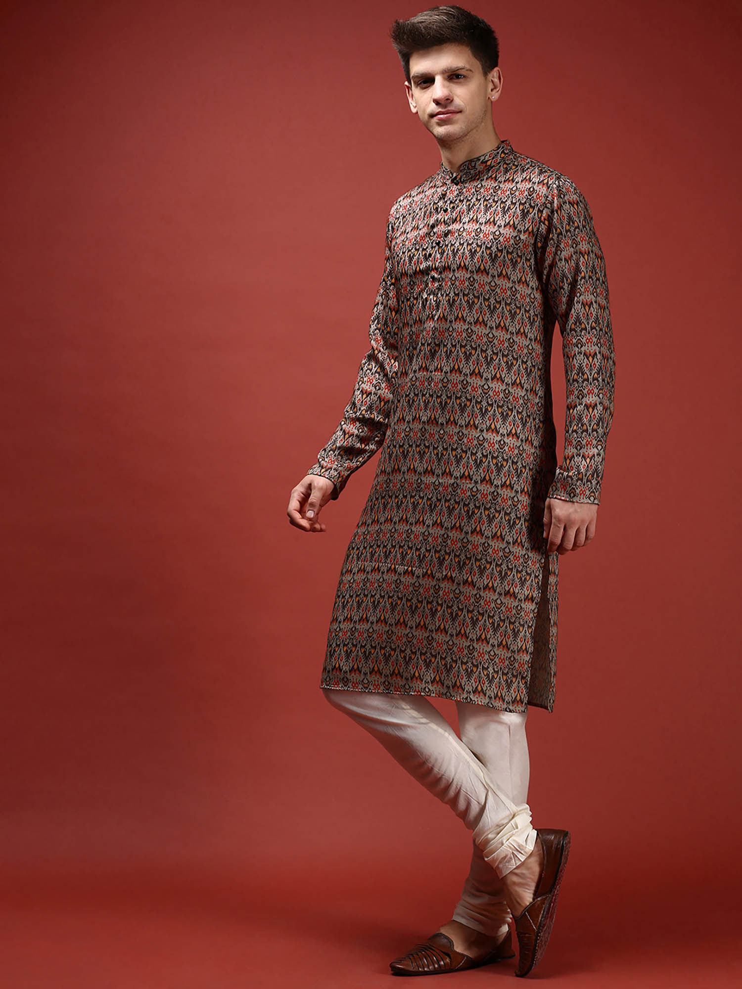KISAH Men Grey Kurta Churidar (Set of 2) (38)